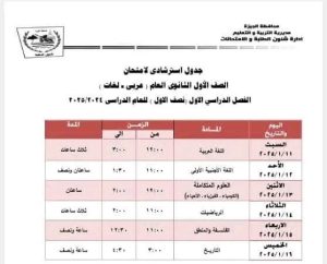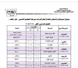 جدول امتحانات محافظة الجيزة نصف العام 2025 – 2026
